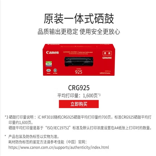 耗材型號  :   CRG925